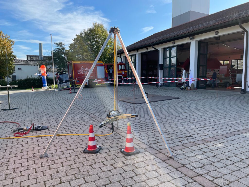 Wer am Samstag zu uns zum Gerätehaus kam, konnte u. A. an verschiedene Stationen Eindrücke von unseren Gerätschaften sammeln. So konnte man z. B. mit unserem Spreizer einen Tennisball von einem Leitkegel auf den anderen setzen und testen wie gut das Fingerspitzengefühl ist und den Tennisball dabei nicht komplett zu zerquetschen. Mit der Wärmebildkamera konnten unterschiedliche Gegenstände in einem verrauchten Raum erraten werden und beim Sack- bzw. Schlauch-Schmeißen die Zielgenauigkeit unter Prüfung gesetzt werden.